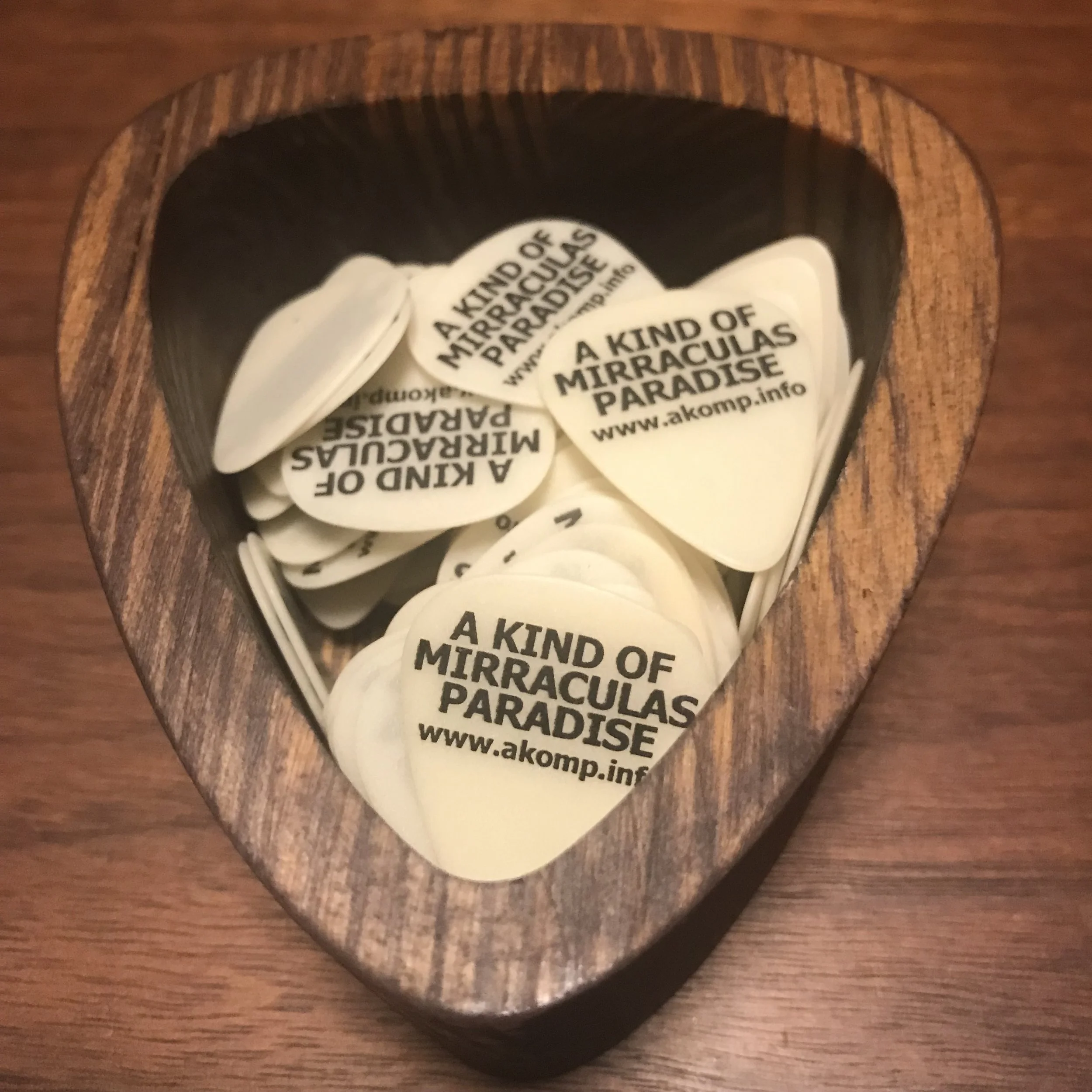 My book about Uncle Bob, who was huge into music (especially Hendrix) and was himself a talented musician, especially a guitarist … Hence on book tours I passed out hundreds of glow-in-the-dark AKOMP guitar picks to people …